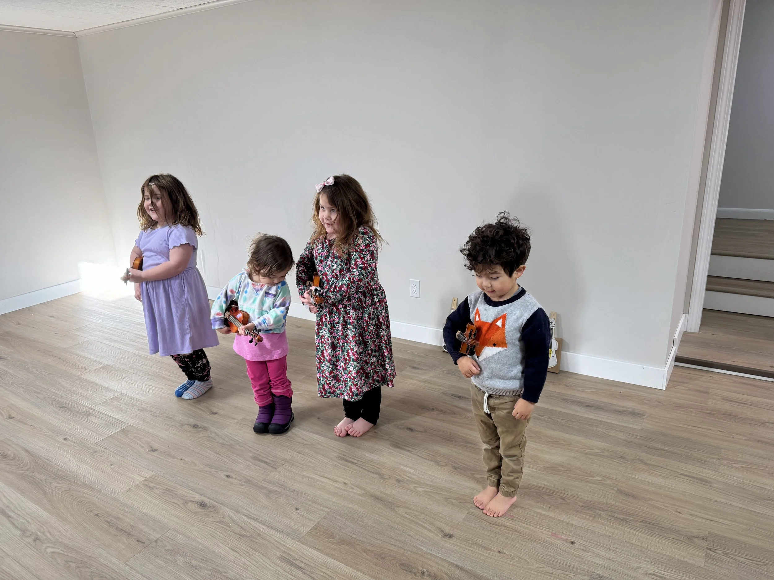 We are currently running a 2025–2026 pilot program with four students, using these early lessons to thoughtfully shape a curriculum that is both fun and effective. Photos and videos from our pilot offer a glimpse into what lessons look like—full of movement, laughter, and music-making.